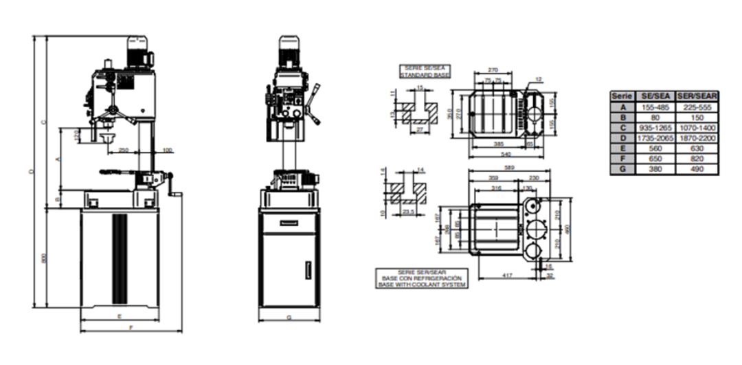 Kích thước một số bộ phận trong máy khoan bàn ERLO GROUP SE series