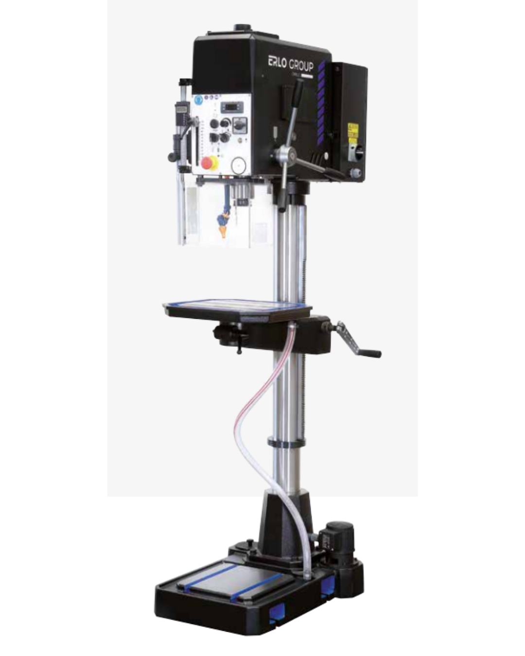 Máy khoan đứng ERLO GROUP C series được thiết kế với cơ cấu ăn dao thủ công, mang lại sự đơn giản và độ tin cậy cao trong vận hành. Máy sử dụng bàn làm việc trượt kết hợp với đầu khoan cố định, cho phép gia công linh hoạt trên nhiều loại chi tiết mà vẫn đảm bảo độ chính xác. Toàn bộ đầu máy, bệ và trụ đều được chế tạo từ gang đúc chắc chắn, giúp tăng độ bền và khả năng chống rung trong quá trình khoan. Đây là dòng máy lý tưởng cho các xưởng cơ khí cần một thiết bị ổn định, dễ sử dụng và tuổi thọ cao.